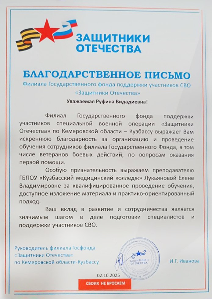 Кузбасский медицинский колледж провел обучение по оказанию первой помощи на базе филиала Государственного фонда «Защитники Отечества» по Кемеровской области – Кузбассу.