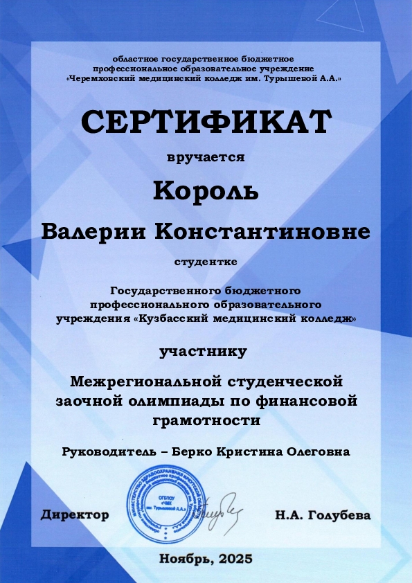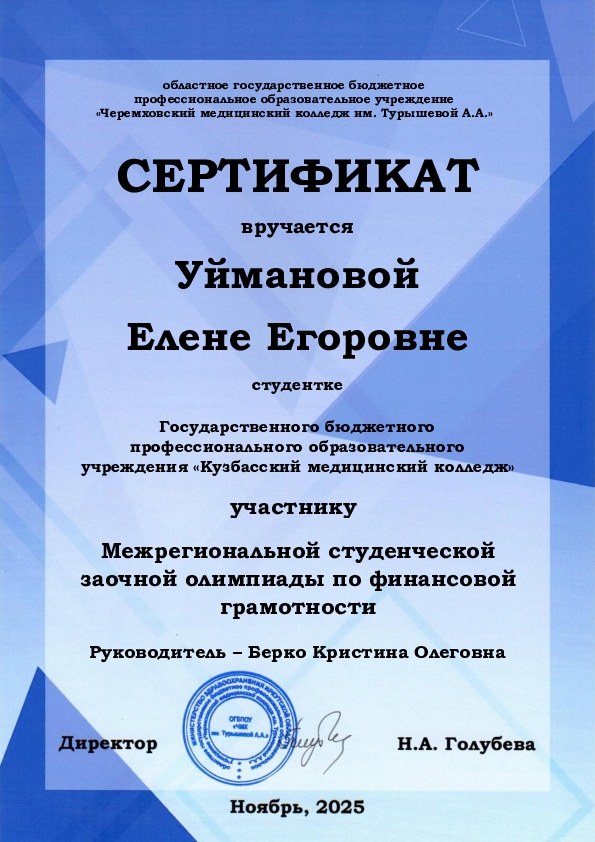 Поздравляем Уйманову Елену Егоровну и Король Валерию Константиновну с получением сертификатов участников! Это отличное достижение, демонстрирующее их стремление к знаниям и ответственное отношение к своему будущему.