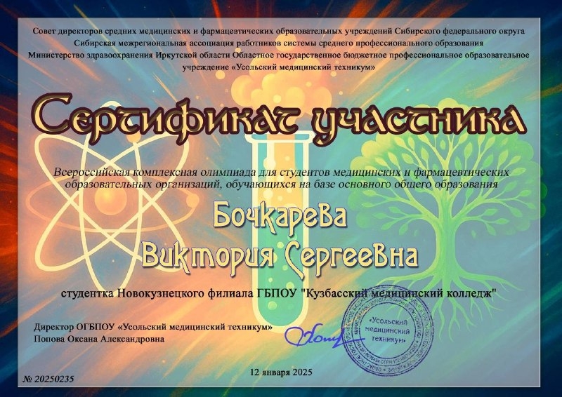 Бочкарёва Виктория — сертификат участника